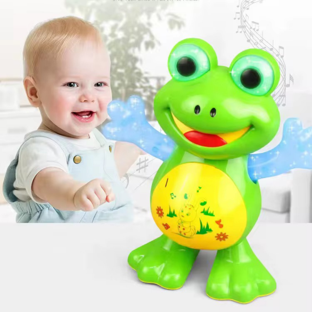 El Sapo Musical Bailarín encanta con sus melodías, luces y giros coordinados que invitan a bailar junto a él. Su diseño simpático y divertido captura la atención y promueve el juego interactivo.
